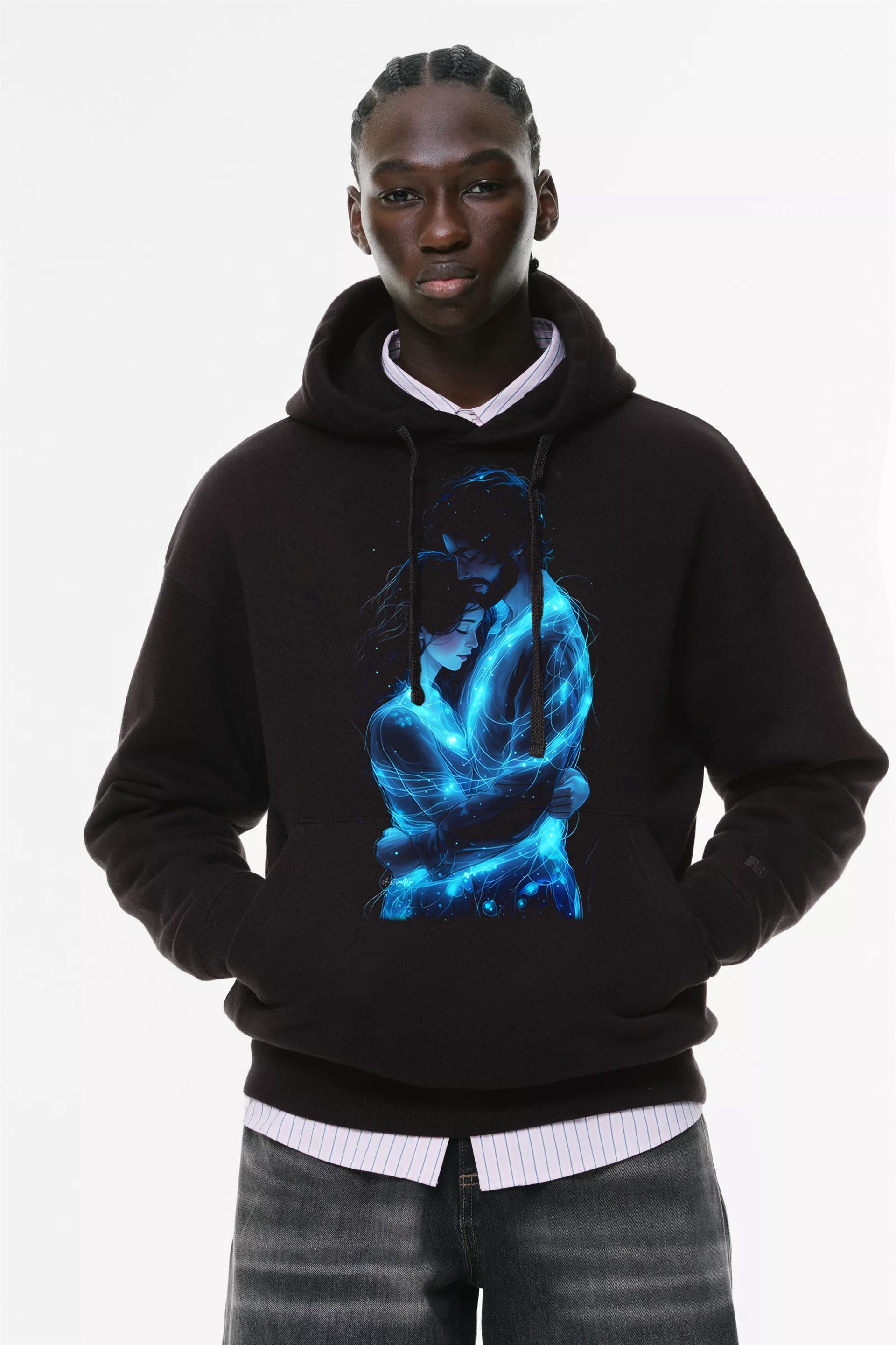 Φούτερ με κουκούλα και τσέπες Prenium ποιότητας της εταιρίας Lux in Tenebrisμε τύπωμα Lovers - Εραστές