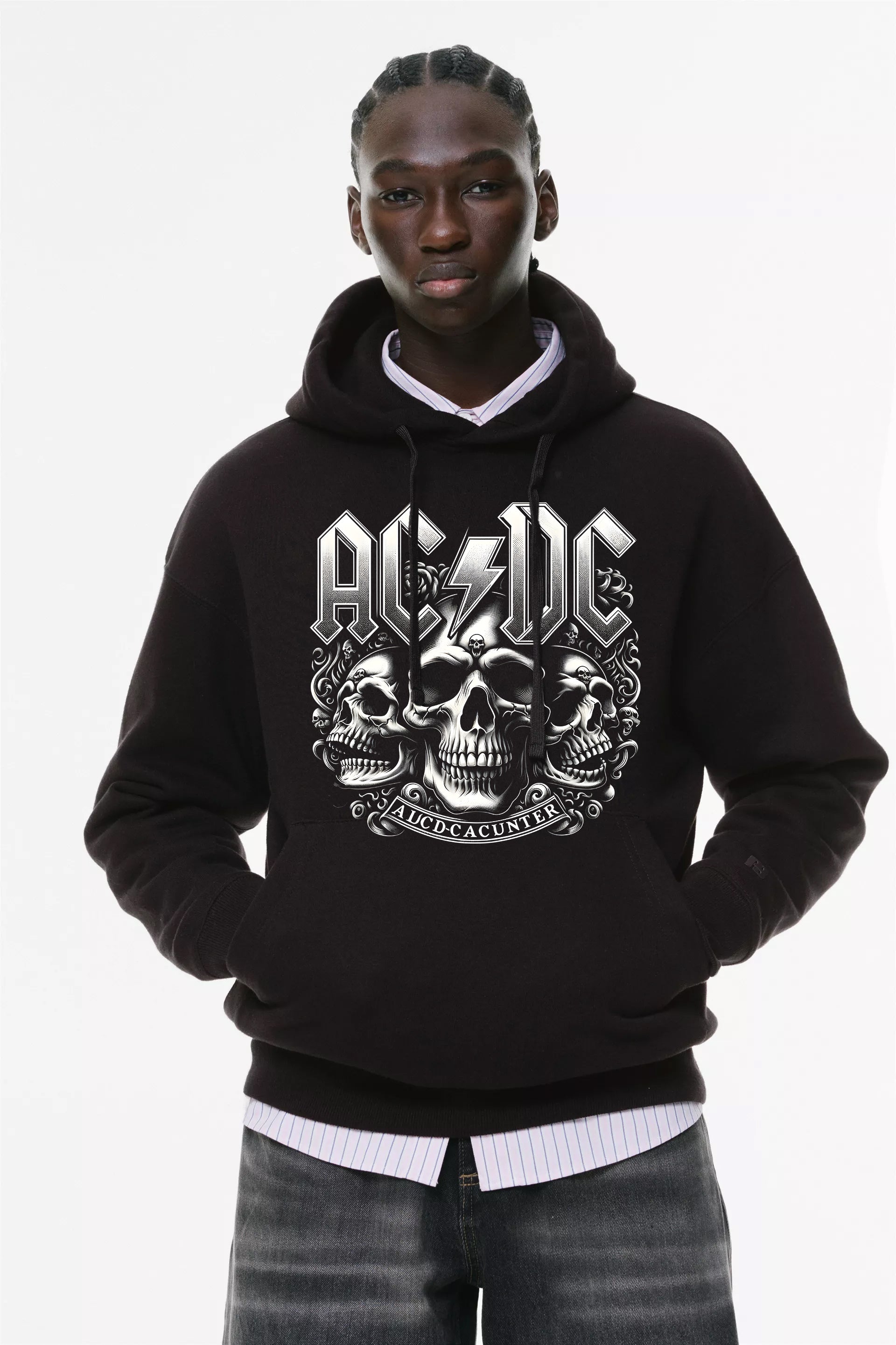 Φούτερ με κουκούλα και τσέπες Prenium ποιότητας της εταιρίας Lux in Tenebris με τύπωμα AC/DC