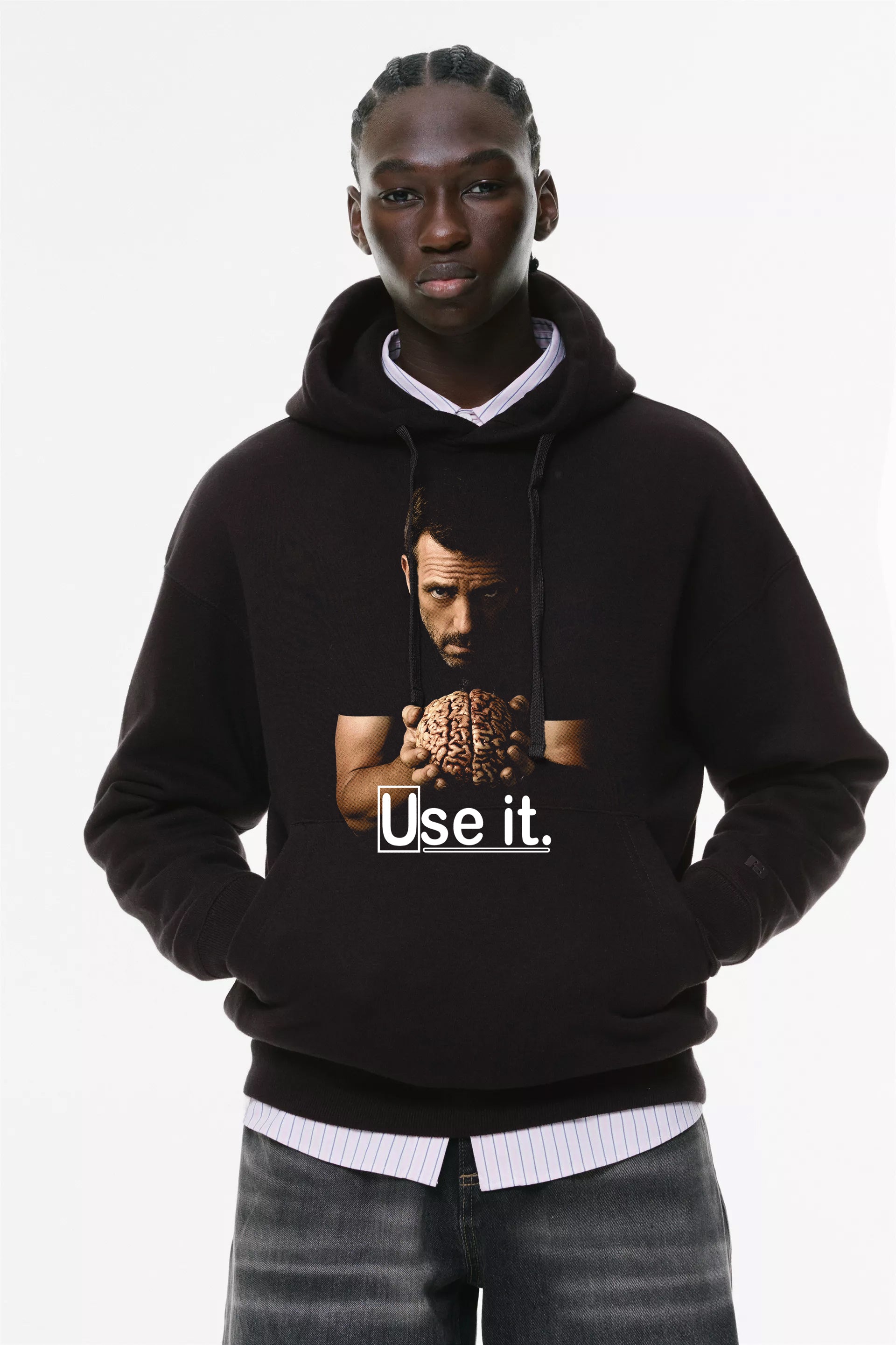 Φούτερ με κουκούλα και τσέπες Prenium ποιότητας της εταιρίας Lux in Tenebris με τύπωμα D.rHouse - Use it