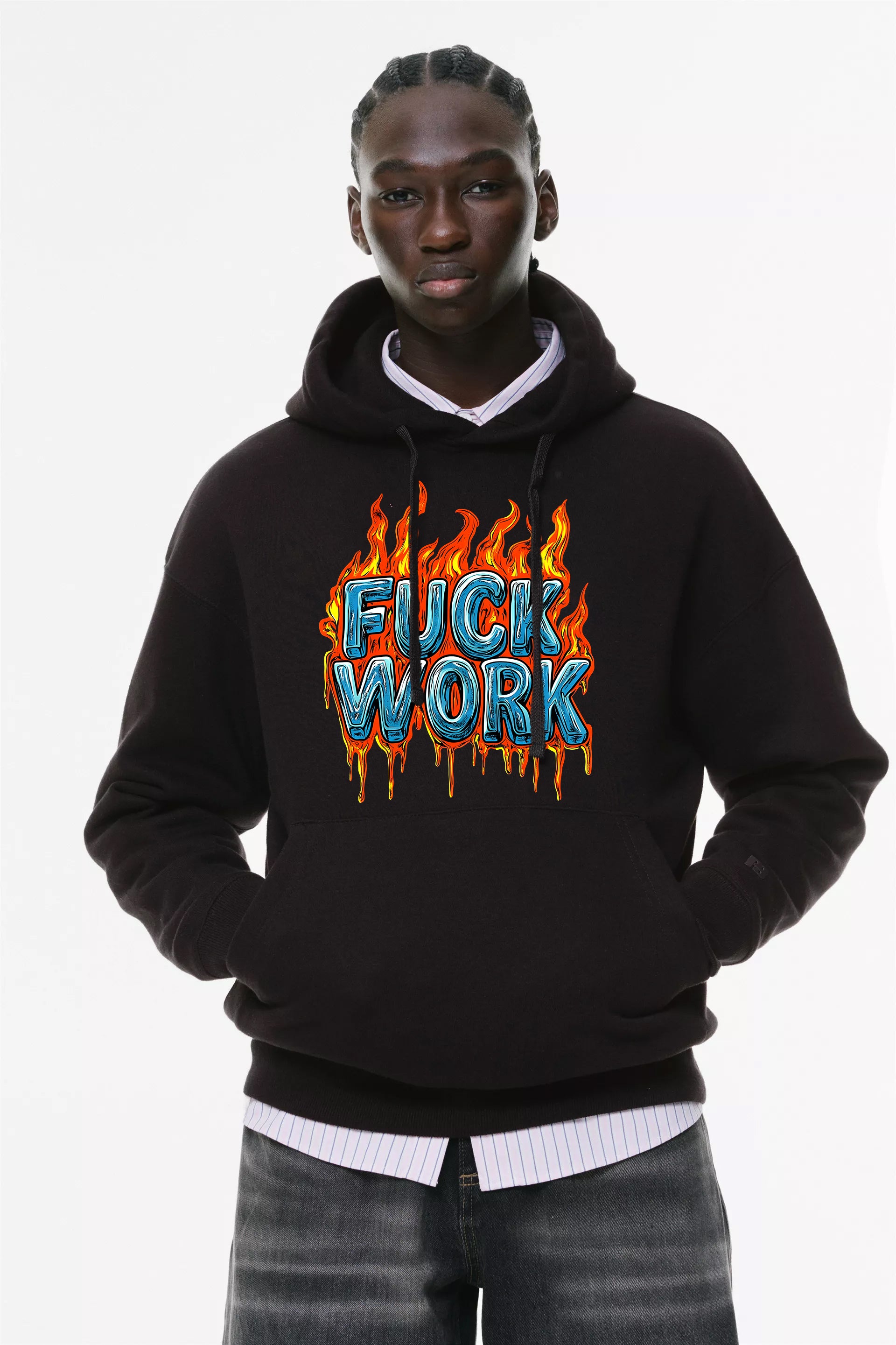 | Φούτερ με κουκούλα και τσέπες Prenium ποιότητας της εταιρίας Lux in Tenebris με τύπωμα Fuck Work |