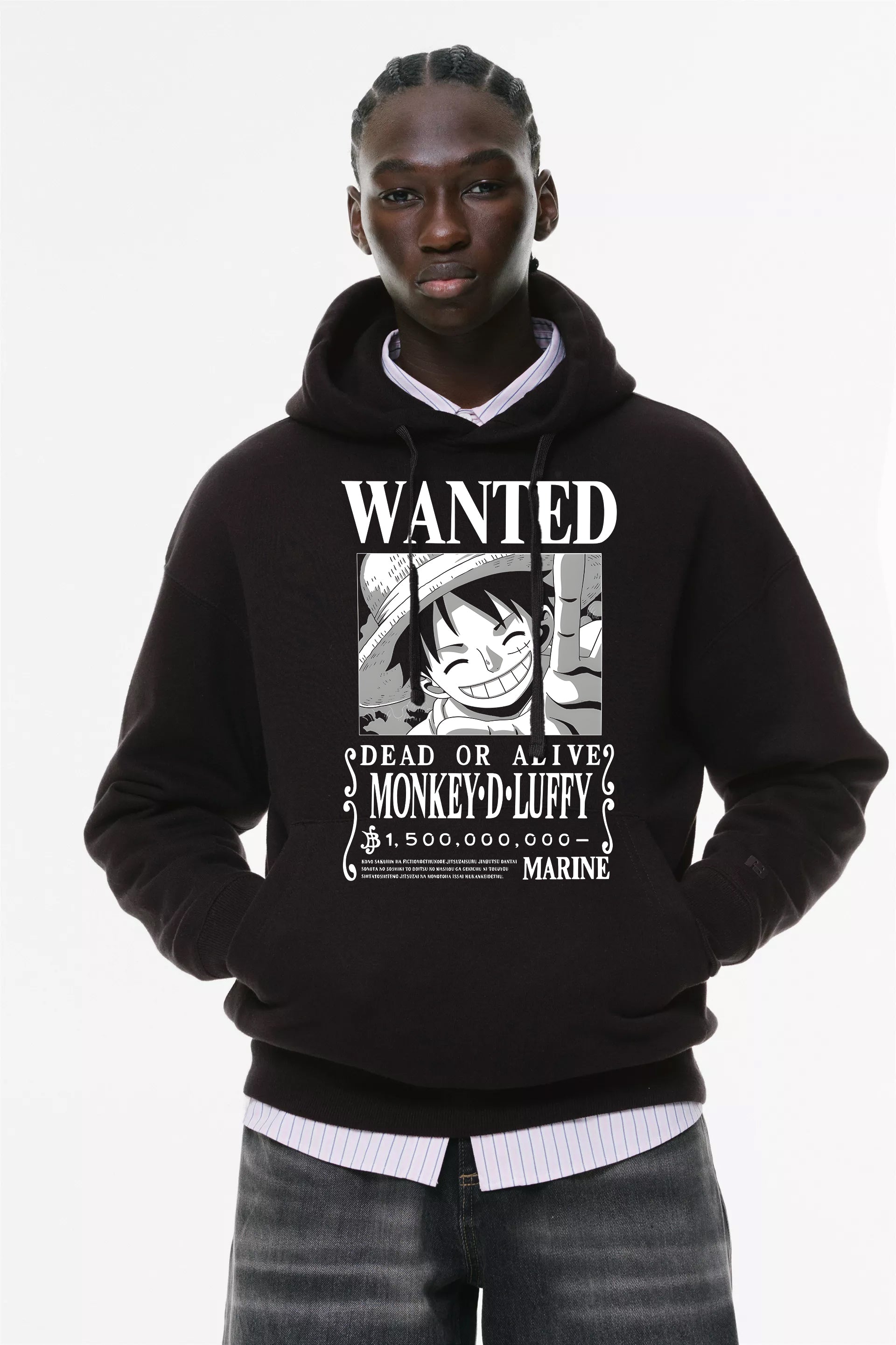 Φούτερ με κουκούλα και τσέπες Prenium ποιότητας της εταιρίας Lux in Tenebris με τύπωμα One Piece - Luffy Wanted Poster