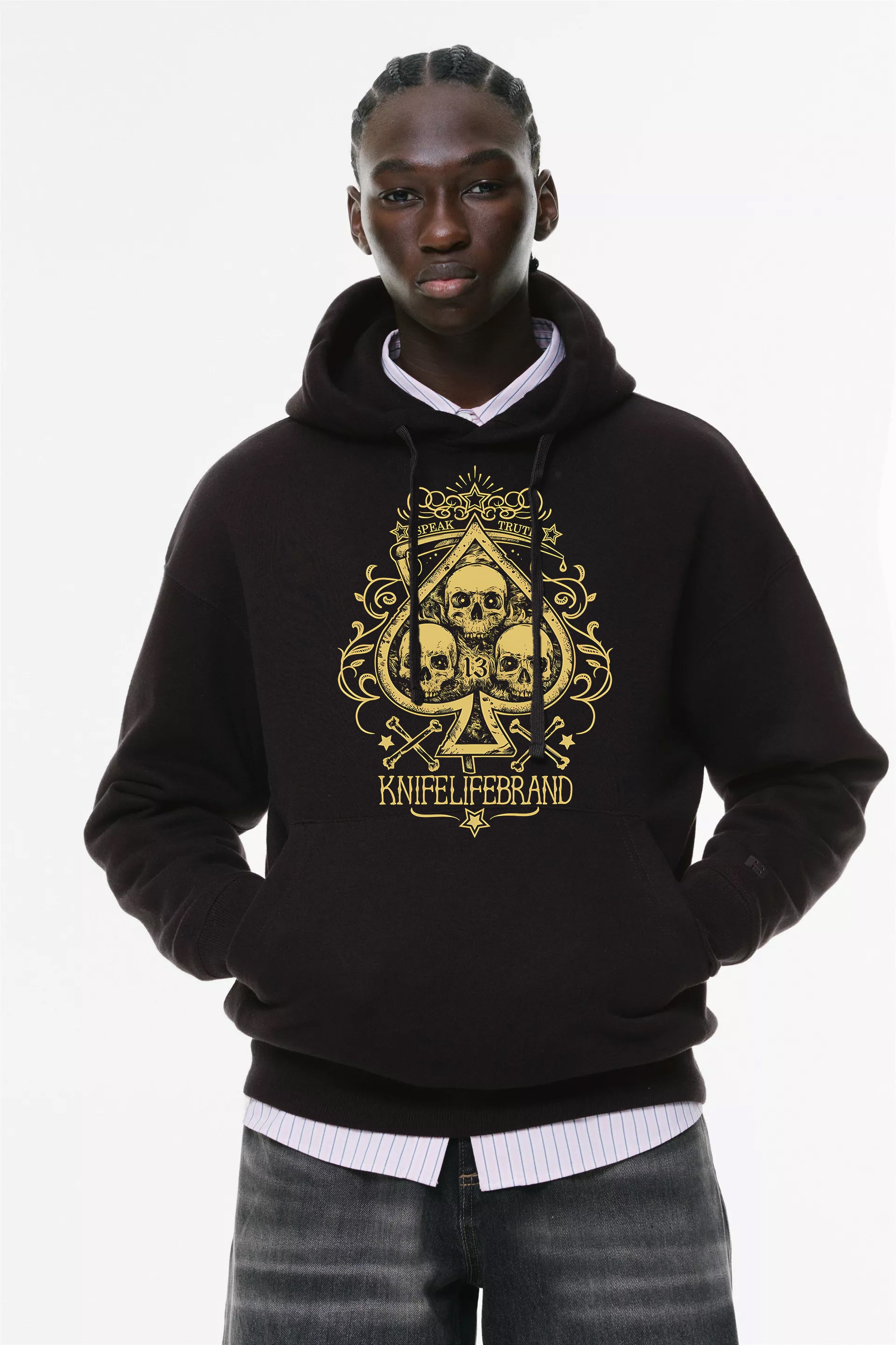Φούτερ με κουκούλα και τσέπες Prenium ποιότητας της εταιρίας Lux in Tenebris με τύπωμα Ourban Skulls - Vintage spades