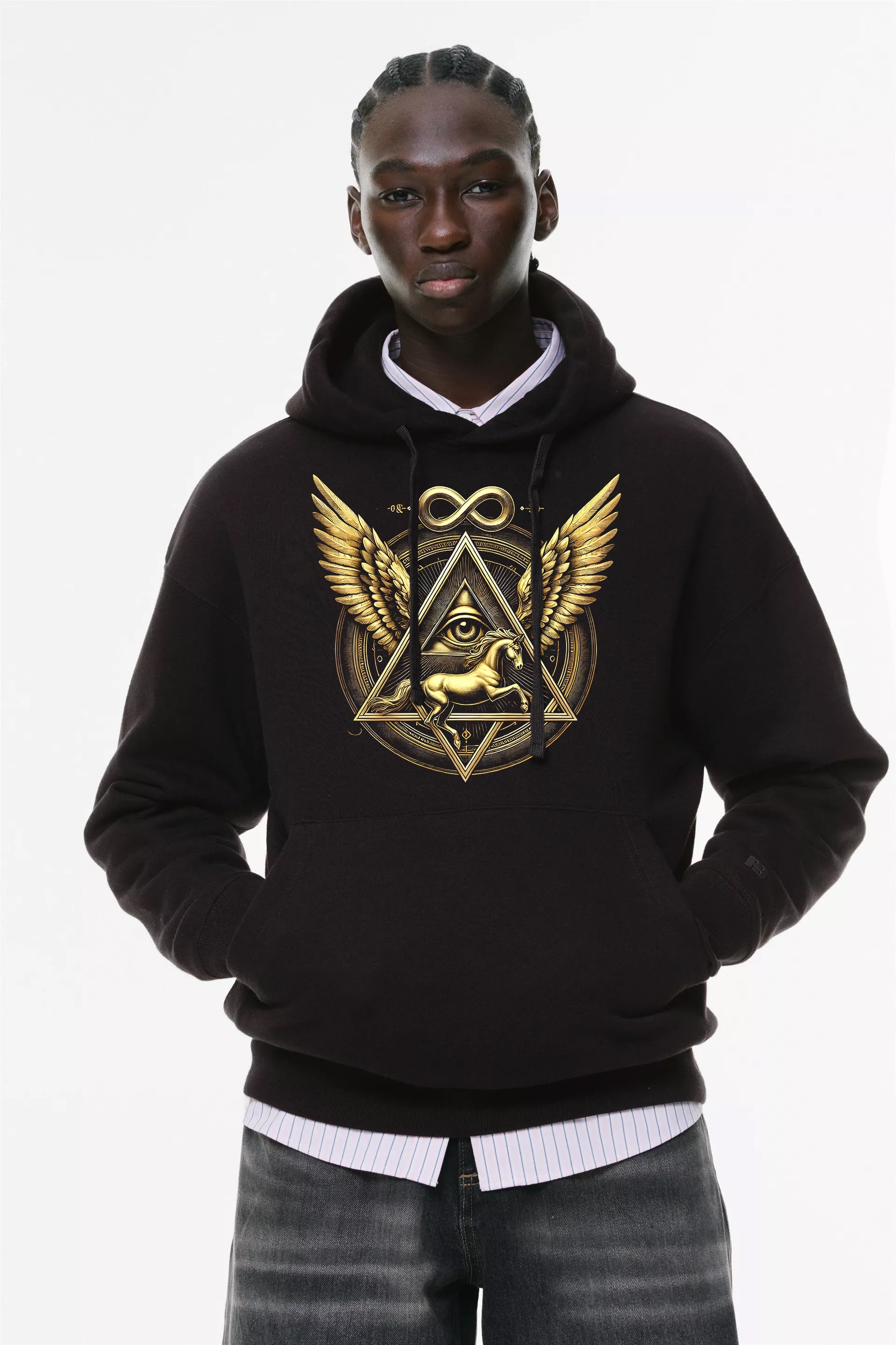 Φούτερ με κουκούλα και τσέπες Prenium ποιότητας της εταιρίας Lux in Tenebris με τύπωμα Pegasus - Infinity - Shield