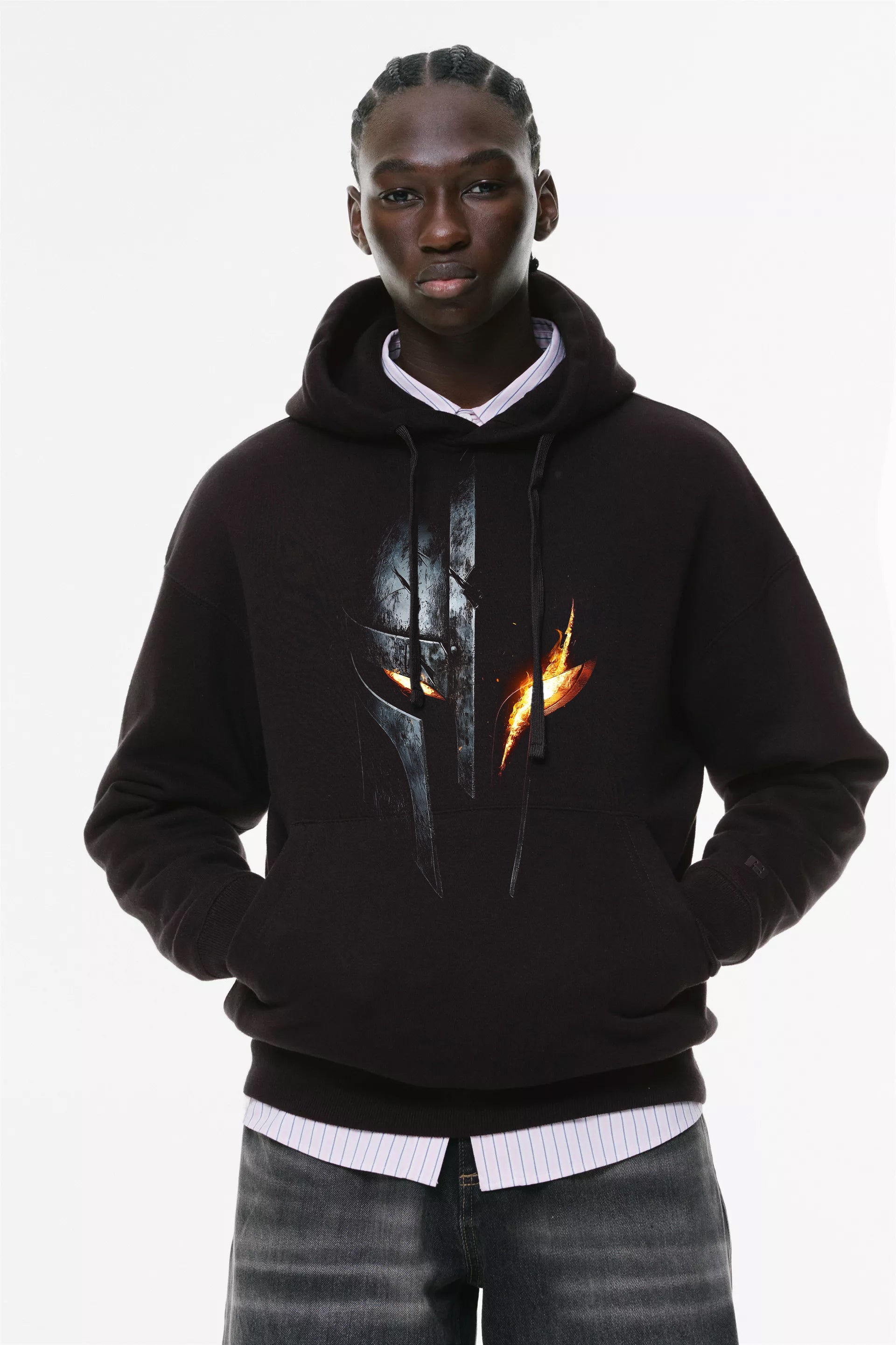 Φούτερ με κουκούλα και τσέπες Prenium ποιότητας της εταιρίας Lux in Tenebris με τύπωμα Spartan Helmet